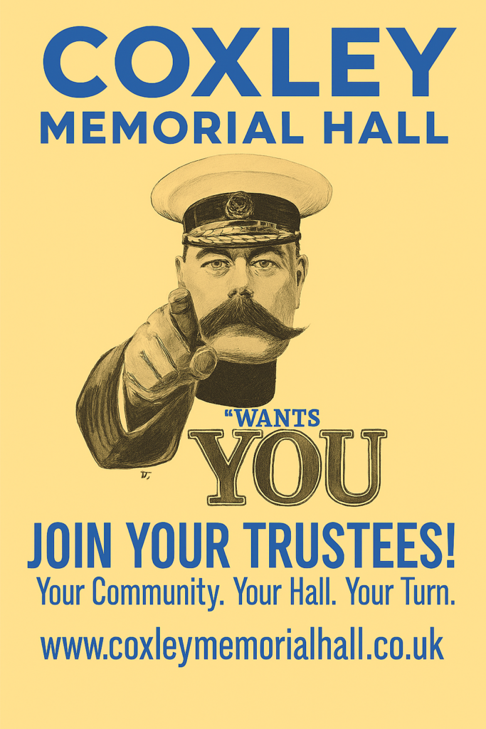 If you would like to know more about joining the Trustees Committee and what we do, then please email Greg at trustees@coxleymemorialhall.co.uk